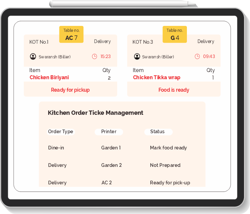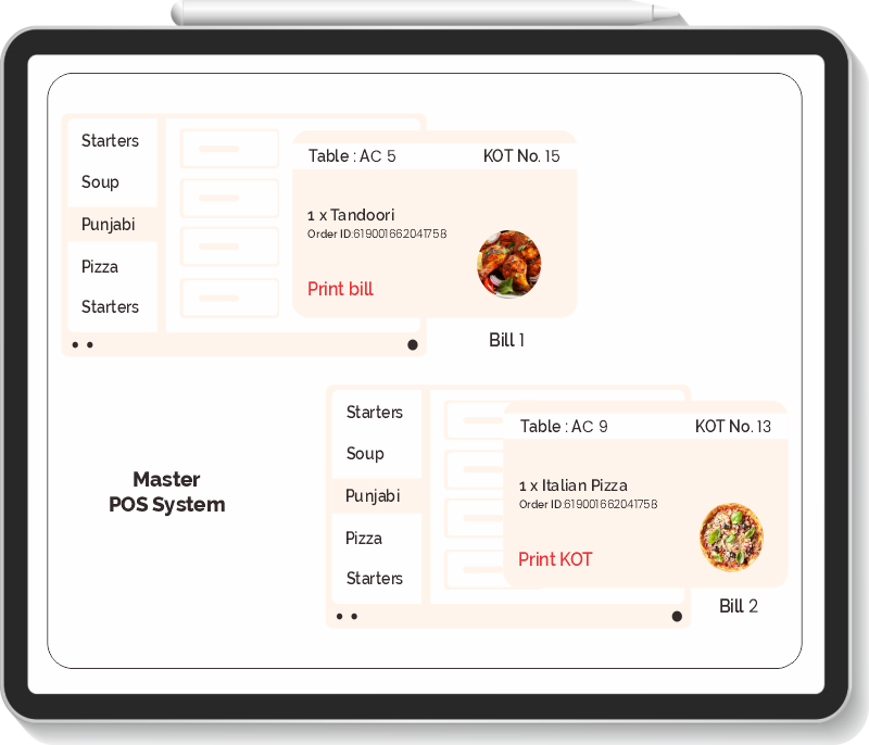 Got different cooking stations? No worries! Assign a unique printer to every station and send KOTs to the respective stations. Smoothly sync them all with the master POS to keep track of all your orders and their running status