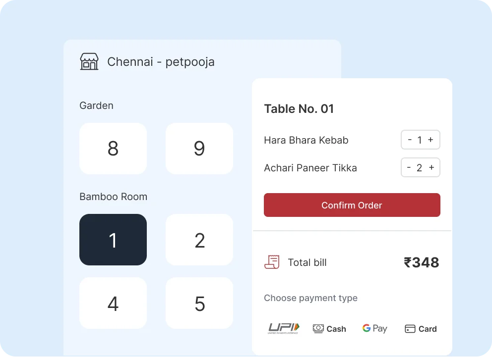 A small and stylish device with different LED colours kept on the table, allowing customers to call for the waiter, ask for water or request a bill, at the click of a button