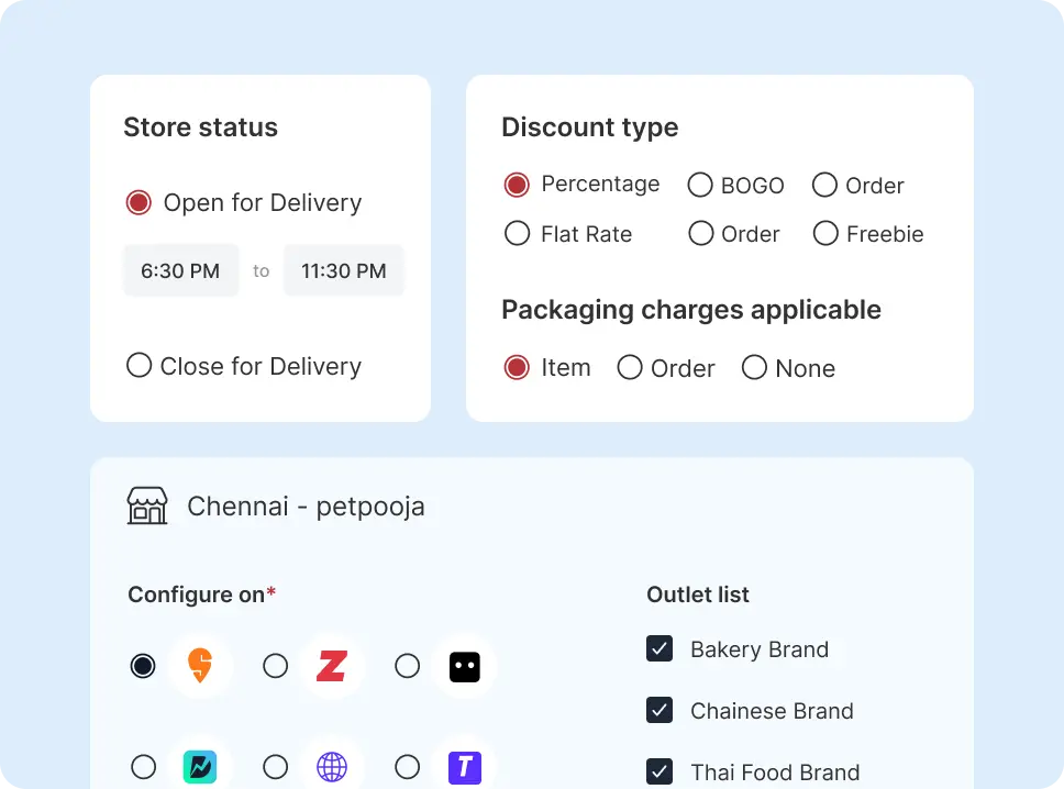 With your I-Hotel restaurant billing software, you can quickly add new menu items, provide a variety of packing options and mouthwatering add-ons, provide special specials, or alter menu pricing across all of your aggregators without difficulty.